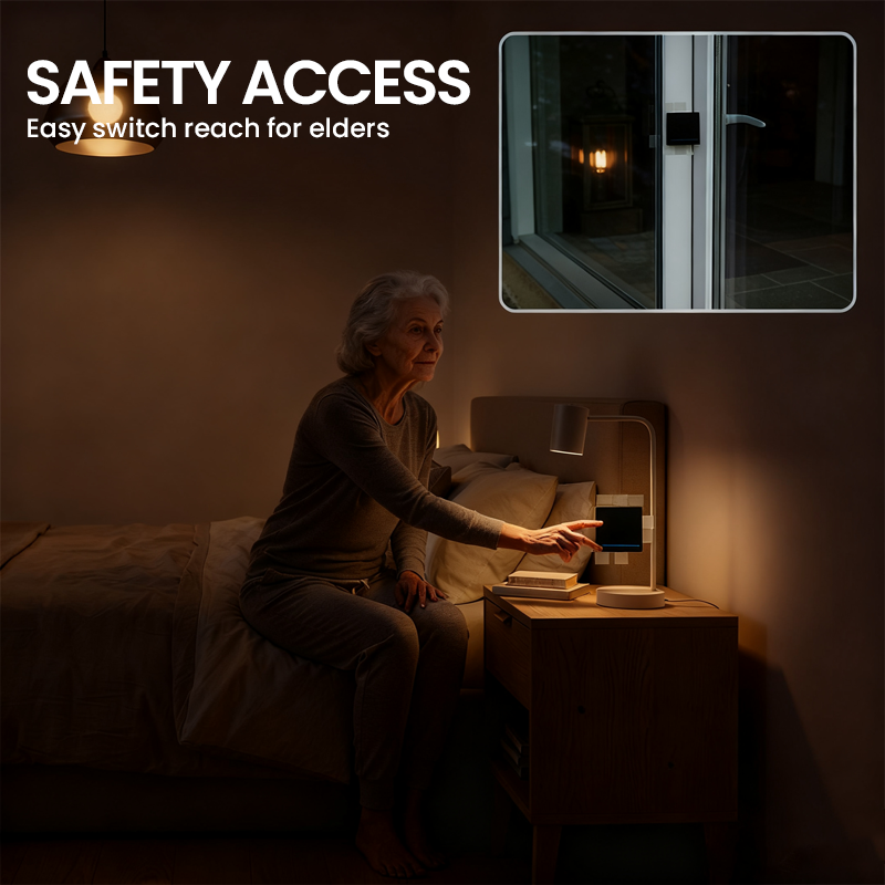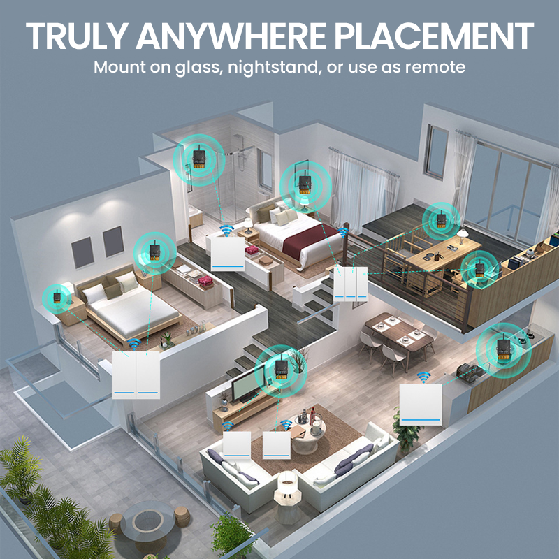 Maximale Flexibilität bei der Platzierung – Schluss mit festen Schalterpositionen. Montieren Sie das Panel auf Glas, stellen Sie es auf Ihren Nachttisch oder nutzen Sie es sogar als tragbare Fernbedienung – für unvergleichlichen Komfort und optimale Erreichbarkeit.