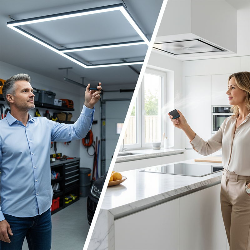 INSTALLATION OHNE VERKABELUNG – Komplexe Verkabelung in der Wand entfällt. Das selbstklebende Bedienfeld lässt sich überall anbringen und bietet so flexible Steuerungsmöglichkeiten. Das spart erheblich Zeit und Aufwand bei der Elektroinstallation und -änderung.