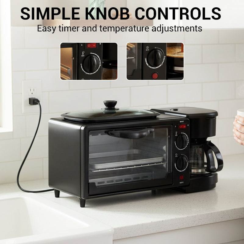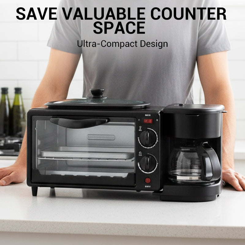3-IN-1-FRÜHSTÜCKSSTATION – Vereinfachen Sie Ihre Morgenroutine, indem Sie Ihr gesamtes Frühstück mit einem einzigen kompakten Gerät zubereiten. Dieses Gerät kombiniert einen Toaster, eine Kaffeemaschine und eine Kochplatte, wodurch Sie wertvollen Platz auf Ihrer Arbeitsfläche sparen und die Zubereitungszeit verkürzen.