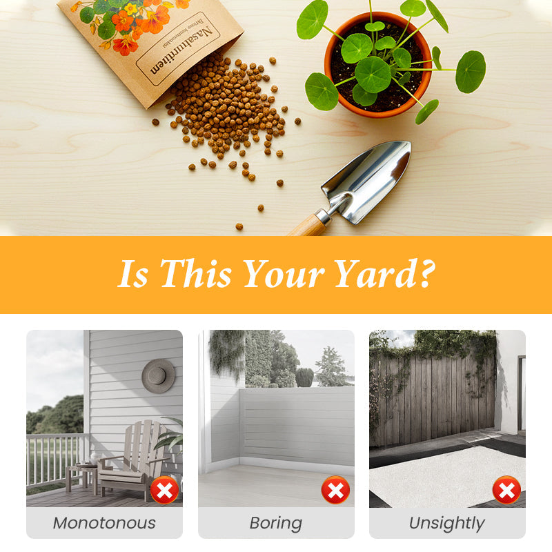 GARTENFREUDE LEICHT GEMACHT - Entdecken Sie die einfache Freude am Gärtnern mit unseren Kapuzinerkressesamen zum Pflanzen. Leicht auszusäen und pflegeleicht, sind sie perfekt für alle, die mühelos Farbe in ihren Garten bringen möchten. Verwandeln Sie kleine Samen in prächtige Blüten und verleihen Sie Ihrem Zuhause oder Garten mit minimalem Aufwand einen bezaubernden, natürlichen Akzent.
