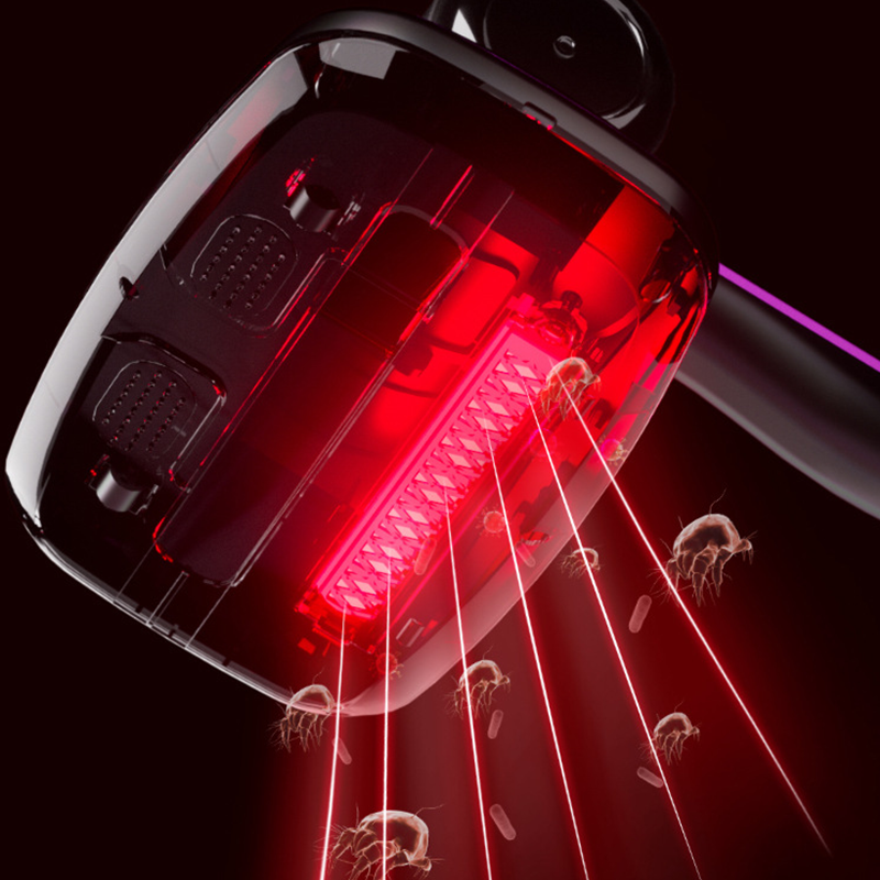 Hochfrequente Doppelreinigung & UV-Leckageschutz – Maximale Reinigungsleistung ohne Kompromisse bei der Sicherheit. Doppelt rotierende Reinigungspads lösen tiefsitzende Partikel aus den Fasern und erhöhen so die UV-Bestrahlung der Hausstaubmilben für eine gründliche Sterilisation. Das Gerät verfügt über einen intelligenten UV-Leckageschutz, der versehentlichen Kontakt mit Haut oder Augen verhindert.